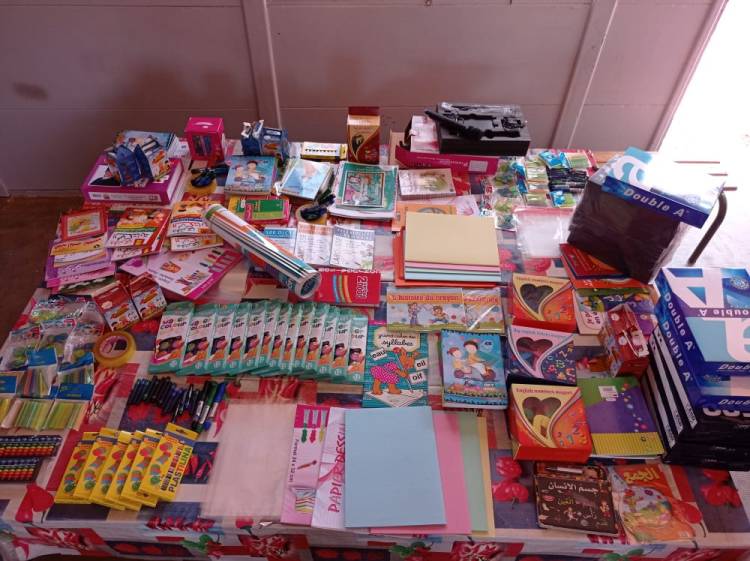 Distribution de fournitures scolaires pour la rentrée 2019-2020 et 2021-2022 pour les 75 enfants de l’école primaire et de jouets pour la maternelle.